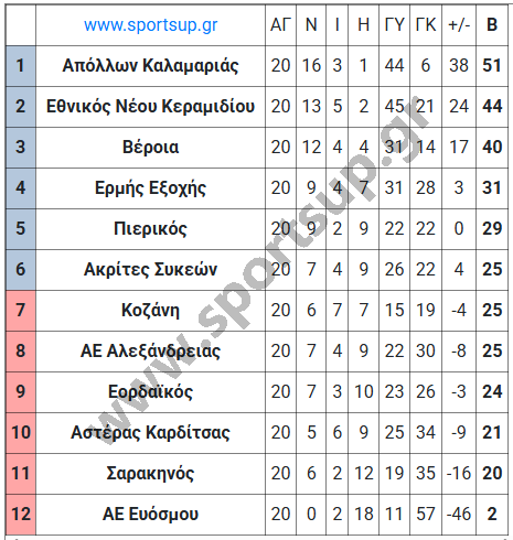 Ο Απόλλων Καλαμαριάς αύξησε τη διαφορά που τον χωρίζει από τους διώκτες του μετά το 0-4 επί της Αλεξάνδρειας σε συνδυασμό με την λευκή ισοπαλία στο παιχνίδι του Πιερικού με την Βέροια.